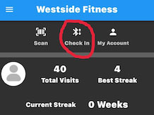 - Access with the App: Open the GymMaster app on your phone. Make sure your phone’s Bluetooth is turned on. Inside the app, there’s a “check in” icon.